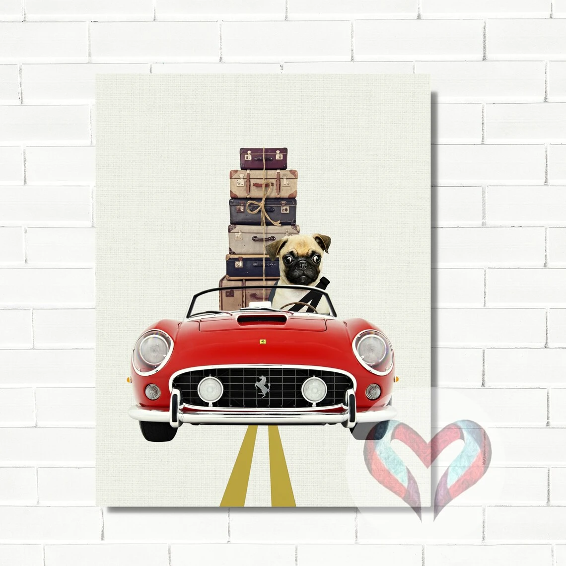 Rev Up Your Home Décor with Custom Pet Portraits on Retro Vintage Ferraris! 🐾🏎️